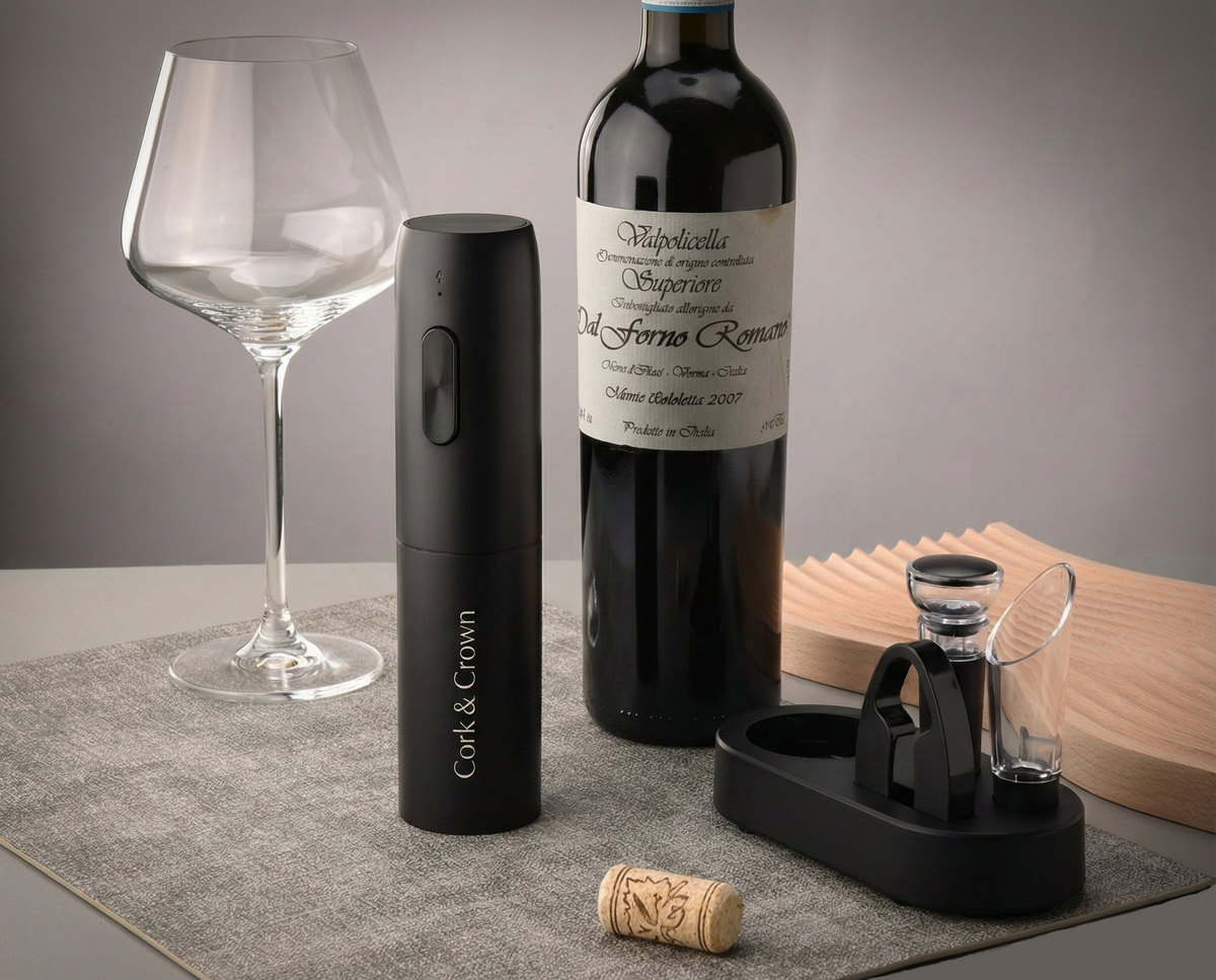 Discover how Cork & Crown makes every bottle effortless. Our electric wine set gives you smooth, clean uncorking in seconds—perfect for relaxed nights in or hosting friends.