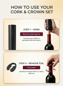 Everything you need to know about your Cork & Crown 3-in-1 Electric Wine Set.